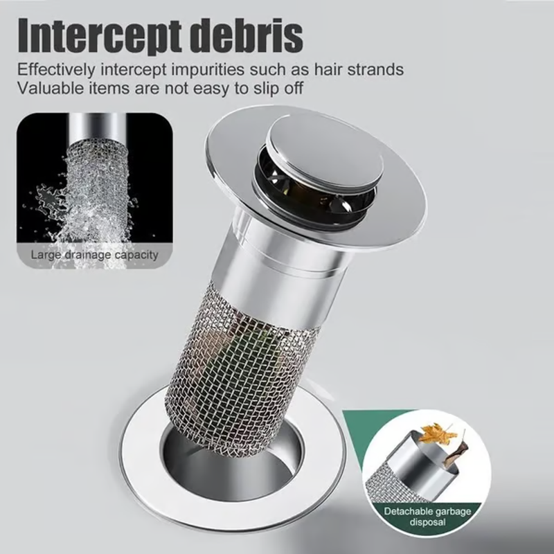 【POP-UP DESIGN】 This sink stopper is designed to catch hair and prevent clogging in bathroom sinks.