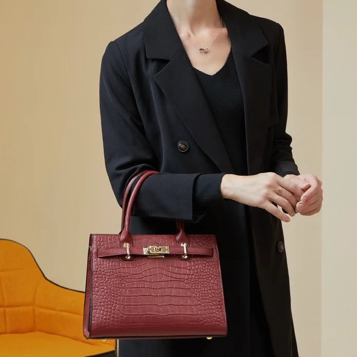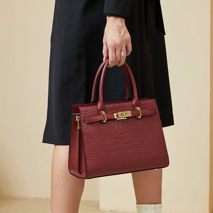 This spacious tote opens with a secure lock closure and features a thoughtfully organized interior, including a zippered pocket and a phone slot to keep your essentials in place. Lined with durable polyester and finished in timeless Black or rich Burgundy, it's the perfect blend of practicality and sophistication.